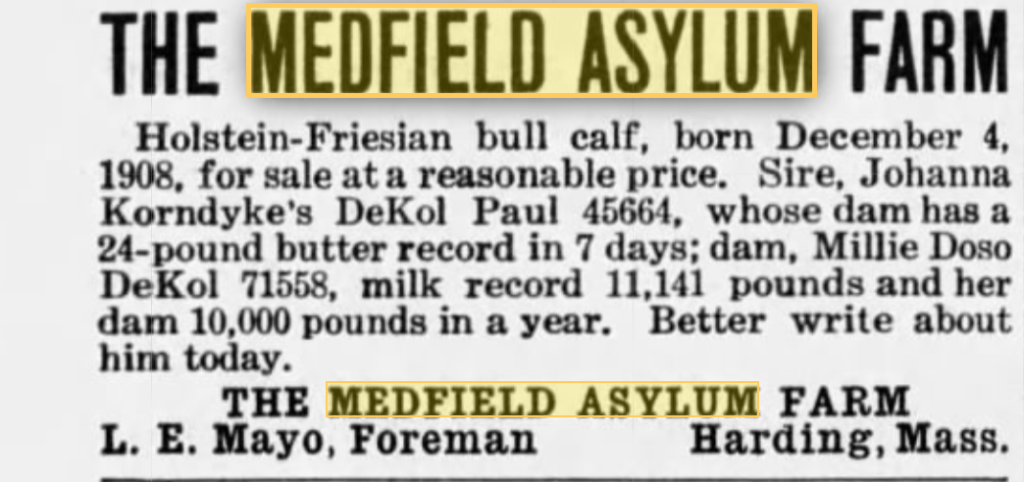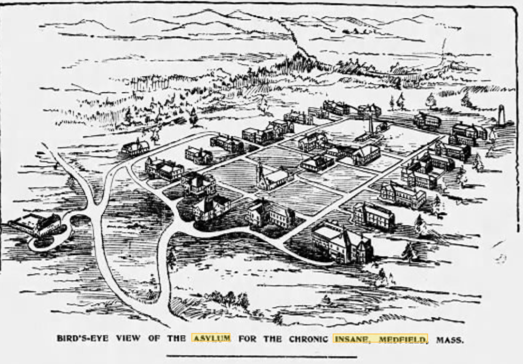 Medfield Insane Asylum was built in 1892 and was Massachusetts first state run institution for mentally ill patients. It was built like a college campus with numerous buildings in order to house patients by need. The asylum was self-sufficient with it’s own water supply and farm to provide for ultimately 1700 patients and 300 employees