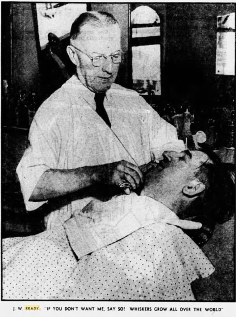 Brady also has a very pronounced philosophy on the reputation of the barbering profession for talking a great deal. “If a customer wants to talk, I will talk. If not, I’ll do his work. Personally, I don’t believe in talking while I do my job. A lot of busy people want to make plans and rest while they are in a barber’s chair. “In my job you’ve got to be a good judge of human nature. When a man is seated in my chair I wash my hands, step back to him and say: ‘What can I do for you?’ “He tells me and I do it. If he doesn’t want to say another word he doesn’t have to and I don’t try to sell him a half dozen different tonics and shampoos … “I figure that a man knows what he wants. If his head is dirty he probably is aware of it. Why should a damned barber tell a man to wash his head? If he wants a shampoo okeh.” All of which leads to a new maxim: beware of talkative barbers!